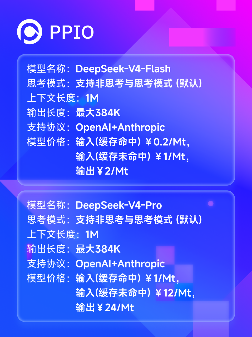 PPIO上线DeepSeek-V4预览版
