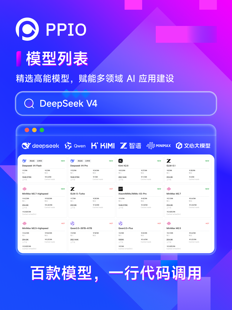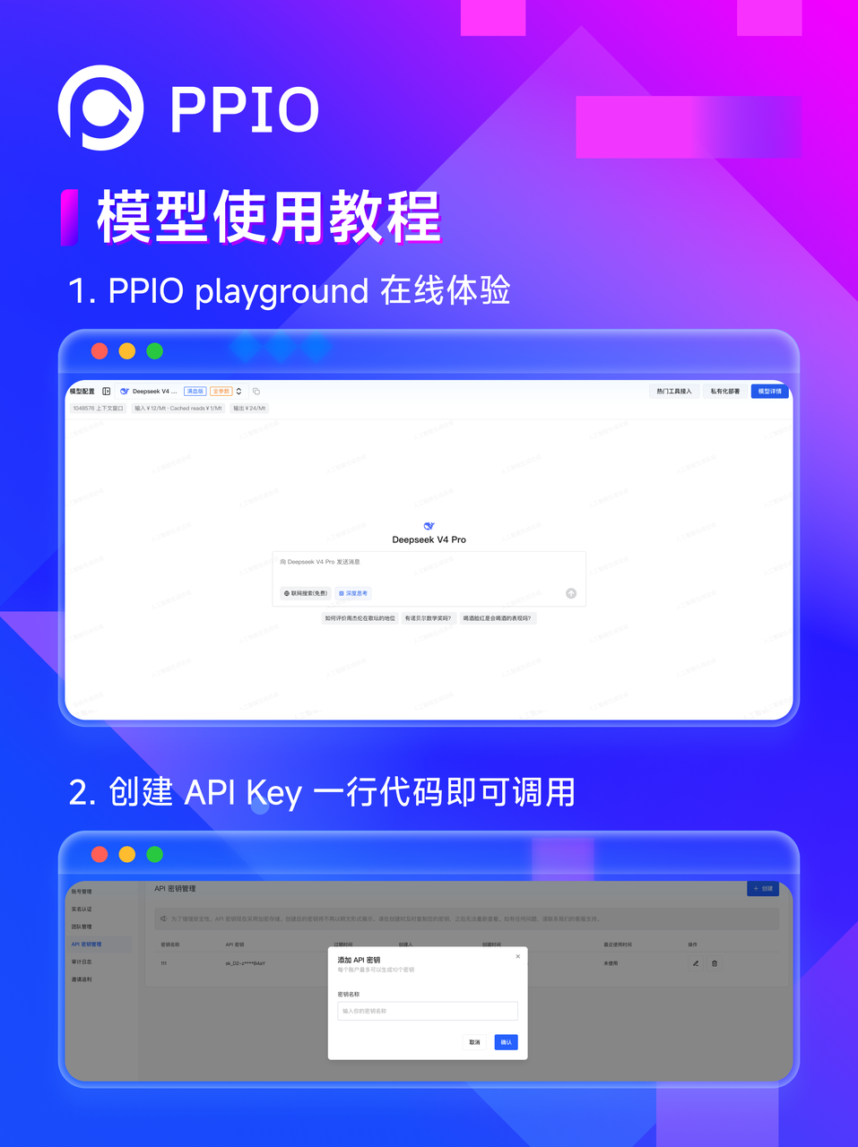 现在,你可以到 PPIO 官网体验、调用 API 能力:https://ppio.com/model/deepseek/deepseek-v4-flashhttps://ppio.com/model/deepseek/deepseek-v4-pro